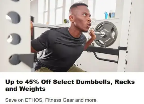Limited-time savings! Shop in store and get up to 45% off select dumbbells, racks, and weights from ETHOS, Fitness Gear, and more.