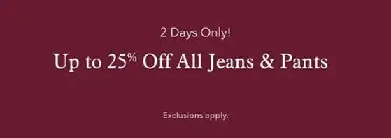 Up to 25% off All Jeans and Pants