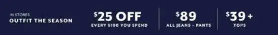 Shop in store and enjoy $25 off every $100 you spend for a limited time.