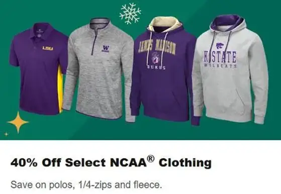 40% Off Select NCAA Clothing