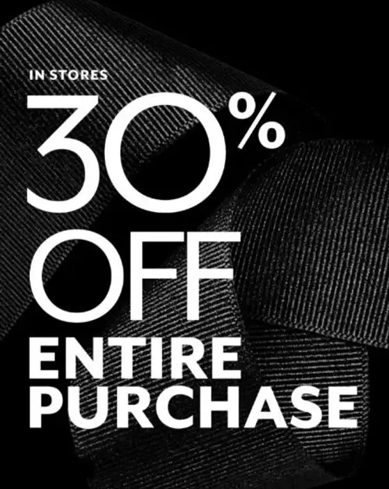 Hurry in and take 30% off entire purchase in store for a limited time.