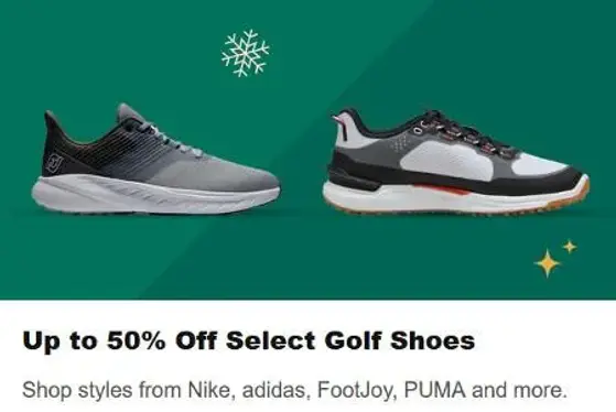 Don't miss out! Shop in store and get up to 50% off select golf shoes from Nike, adidas, FootJoy, PUMA and more.
