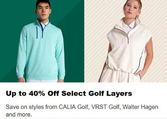 Shop in store and get up to 40% off select golf layers from CALIA Golf, VRST Golf, Walter Hagen and more.