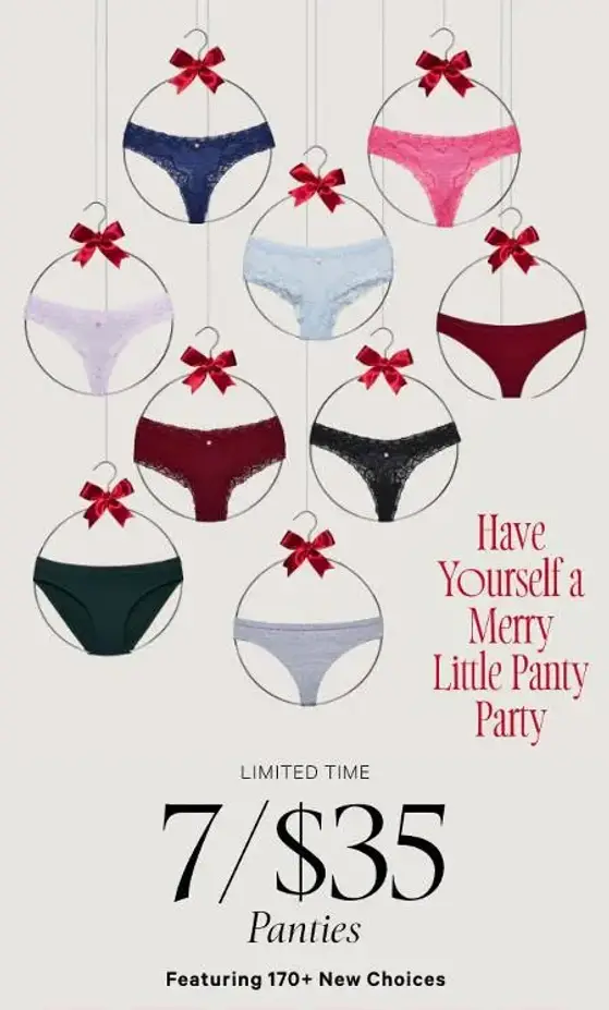 Limited-time savings! Shop in store and get 7 panties for $35.