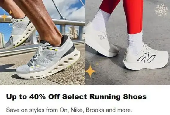 Hurry in & save! Shop in store and get up to 40% off select running shoes.